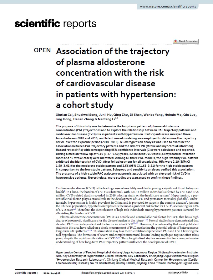 Association of the trajectory of plasma aldosterone concentration with the risk of cardiovascular disease in patients with hypertension: a cohort study
