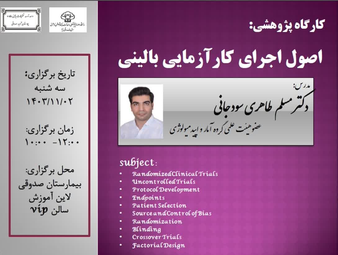 مرکز توسعه تحقیقات بالینی بیمارستان شهید صدوقی برگزار می کند
