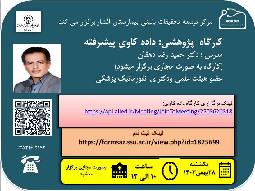 کارگاه داده کاوی پیشرفته با حضور مدرس محترم دکتر حمیدرضا دهقان در تاریخ 1403/11/28 بصورت مجازی برگزار میشود.