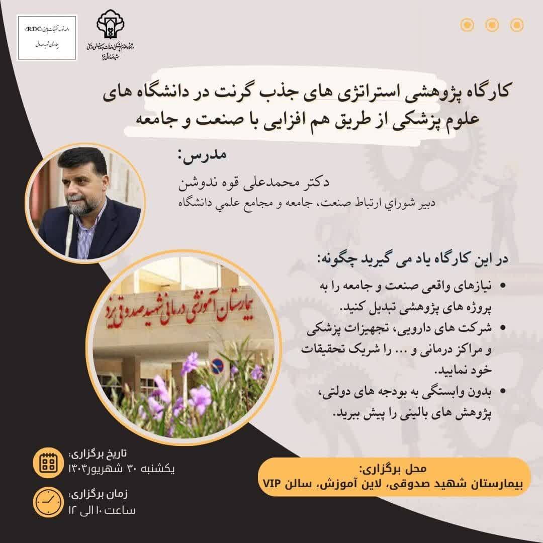 کارگاه استراتژی های جذب گرنت در دانشگاه های علوم پزشکی از طریق هم افزایی با صنعت و جامعه