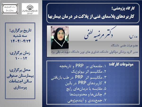 کارگاه کاربردهای پلاسمای غنی از پلاکت در درمان بیماری ها