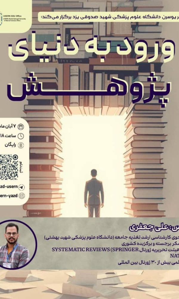 دفتر یوسرن یزد برگزار می کند: کارگاه ورود به دنیای پژوهشMnikfardمهر 30, 1404دفتر یوسرن دانشگاه علوم پزشکی شهید صدوقی یزد برگزار میکند: کارگاه ورود به ... اطلاعات بیشتر